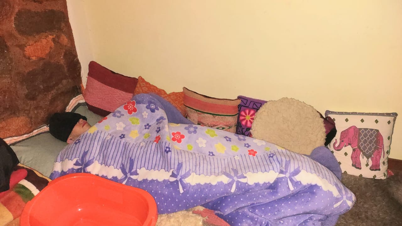 - Descansas en una cómoda cama de alfombras y entras en un estado meditativo de 40-60 minutos hasta que la medicina se hace presente.